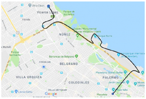 Linea 11 Ramal B : Est.Vicente Lopez – Puente Saavedra – Est.Nuñez- Ciudad Universitaria – Aeroparque – Bosques de Palermo – Plaza Italia – Palermo – Almagro – Boedo – Parque Patricios – San Lorenzo